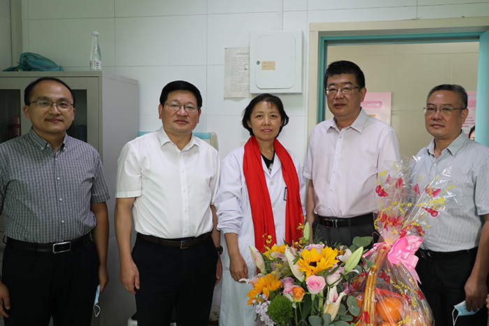 8日上午,顾家山前往第一临床医学院(第一附属医院),慰问该院妇产科主任医师魏兆莲,向其荣获2021年“安徽省最美医生”称号表示祝贺,并为其送上鲜花和节日祝福。亲切交谈中,他详细了解魏兆莲教授工作、生活、教学和科研等情况,对其为学校教育和医疗事业作出的积极贡献表示感谢。